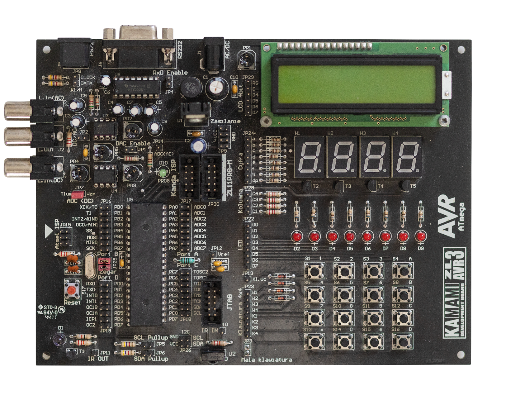 - zestawy ZL10AVR i ZL3 AVR z mikrokontrolerem typu Atmega (8-bitowa architektura AVR); środowisko programistyczne Microchip Studio,