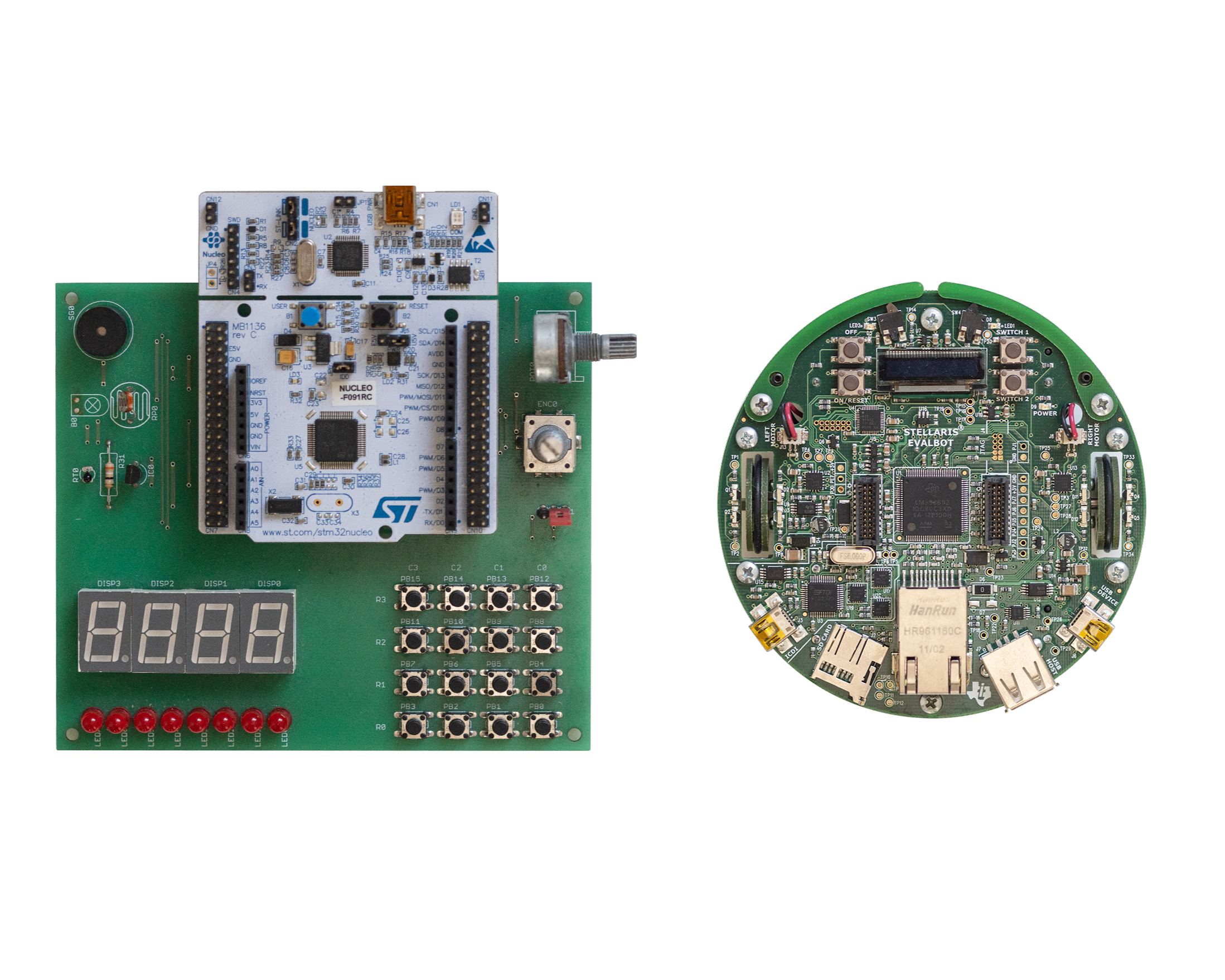 - zestawy NUCLEO-F091RC/F401RE z płytkami rozszerzeń we/wy z mikrokontrolerami typu STM32Fxxx (32-bitowa architektura ARM); środowisko programistyczne STM32CubeIDE,