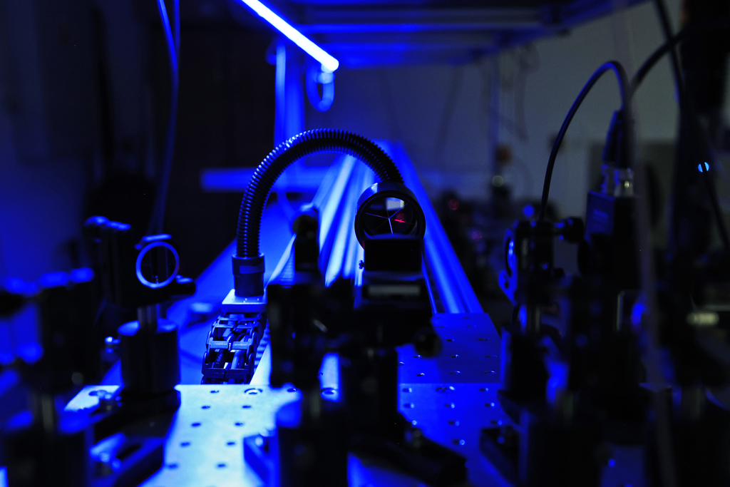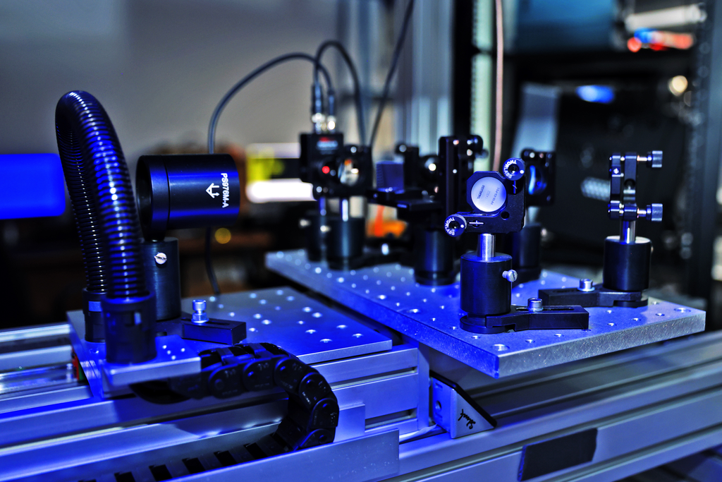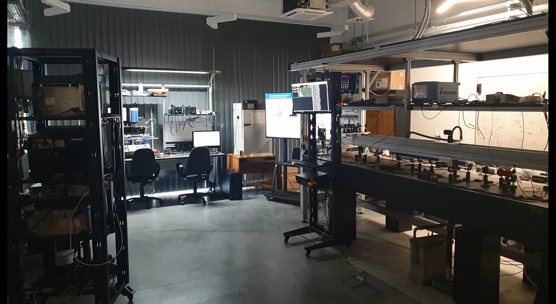 - osadzony na fundamencie pływającym stół optyczny firmy STANDA wyposażony w pneumatyczny system tłumiący drgania,